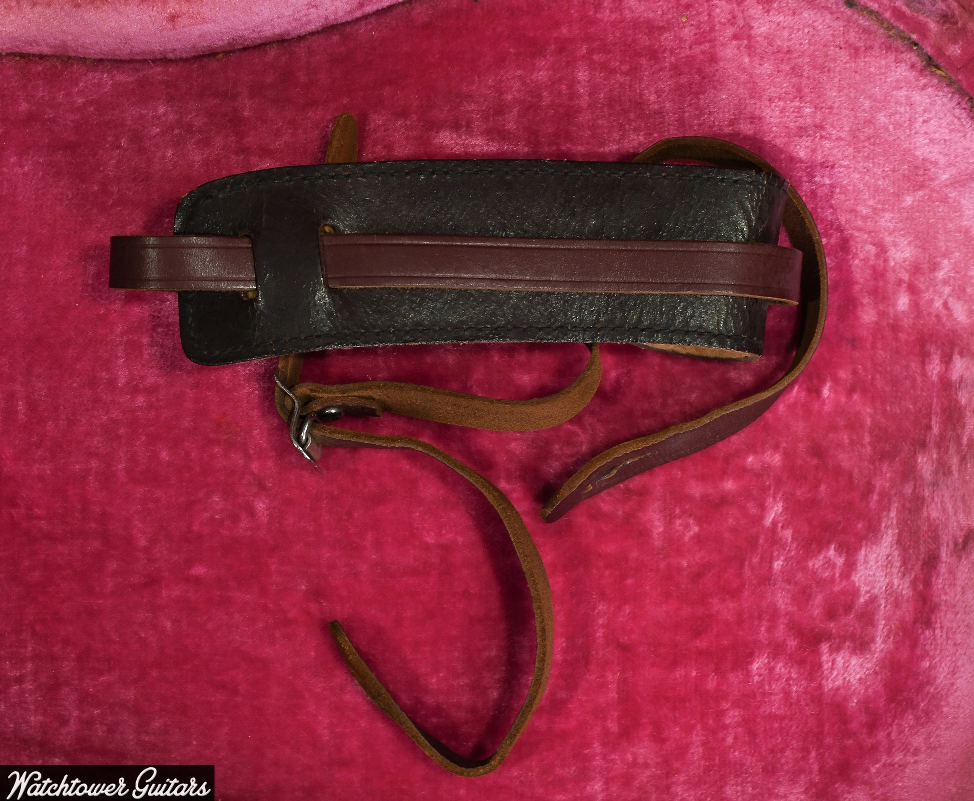 This 1955 Gibson Les Paul Standard Goldtop is an all-original instrument from a long-held collection, featuring the rare gold-painted back and neck treatment. The guitar retains its original hardware and plastics, including several slightly bent but functioning tuners, and comes in its original Lifton hardshell case. The finish shows period-correct checking and wear consistent with age, but structurally it is sound and plays extremely well. Weight is 8 lbs 14 oz, and the neck and body deliver the classic Les Paul midrange and sustain associated with mid-1950s Gibson P-90's.