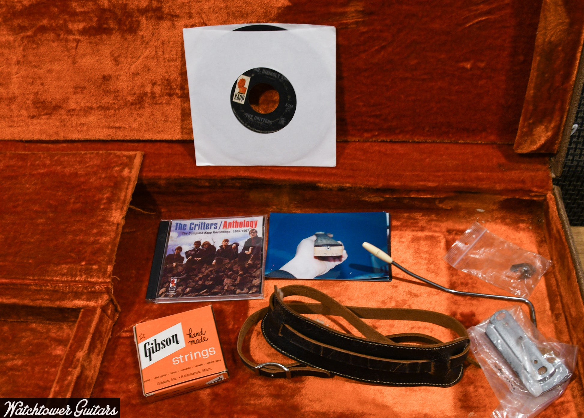Introducing the 1962 Fender Jaguar Sunburst, a stunning piece of musical history that stands out not only for its vintage appeal but also for its rarity. This guitar is all original, save for a replaced input jack, which is included along with the original. What makes this instrument particularly special is its early production date, with a neck pencil-dated to March 1962, a unique feature as it lacks the typical stamp found on later models. This Jaguar has a rich legacy, having been used by the band "The Critters," and it comes with a 45 single and a CD retrospective, adding to its provenance.