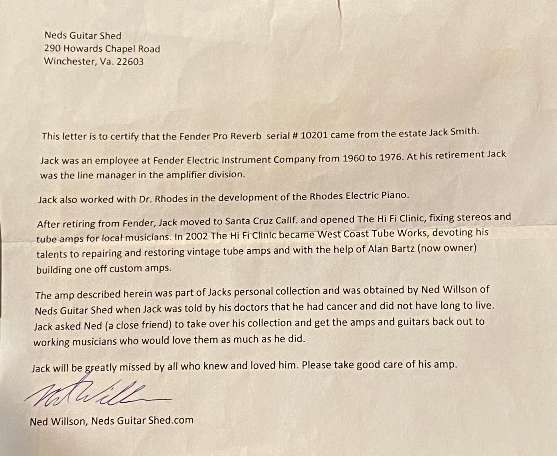 A very special and pristine Pro Reverb. As per the letter supplied to/from its previous owner, a Line Manager at Fender in 1967 pulled this one from shipping to keep as a personal Amp. Other than a couple capacitors as necessary for maintaining a 53 year old amp and a 3-prong plug for safety, it's all original.