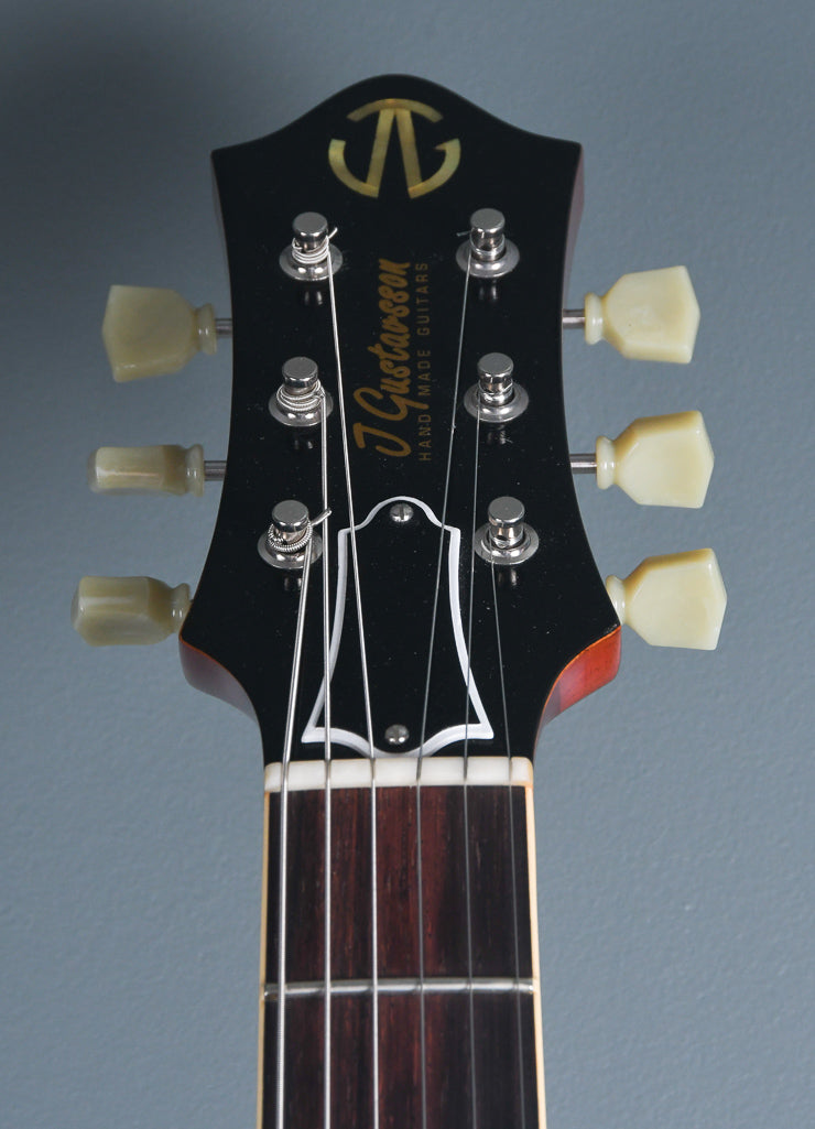If you've been waiting for one of the infamous Wildwood 5 Johan Gustavsson Bluesmaster 59's to surface here's your chance. This is fresh out of a collection where it's been for over 12 years. I remember it like yesterday when my friend Matte from Woodstock NY told me about Johan's guitars and how special they were. Little did I know how fast the market would correct his originally pricing and the first batch into Wildwood Guitars disappeared mostly to employees once they arrived. The internet was on fire once that first batch of guitars hit these shores and we see how coveted these early examples are. This near mint Gustavsson Custom '59 finished in a beautiful nitro cherry sunburst is one of those first guitars into the US market. Johan's guitar are not just works of art but are incredible instruments that are meant for someone to cherish for a lifetime.