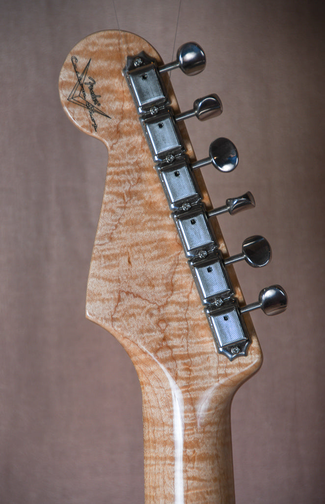 The great thing about NOS Custom Shop Stratocaster's after having so many relic's in the shop is that it's nice to have a black shiny Fender to admire. This one is a real show stopper with it's beautiful and comfy maple neck. It really looks as clean as can be for a 14 year old guitar. There's also more flame on this neck than we have on some Les Paul's! She sounds great with the stock CS pickups so please let us know if you have any questions. Ships in upgraded Fender case with case candy and COA.