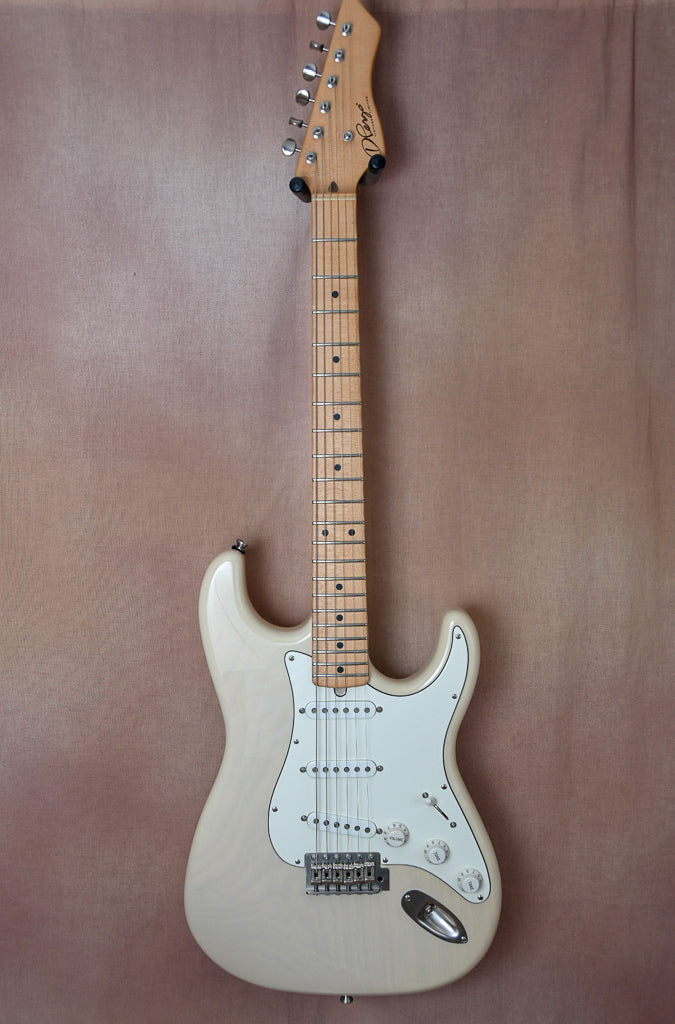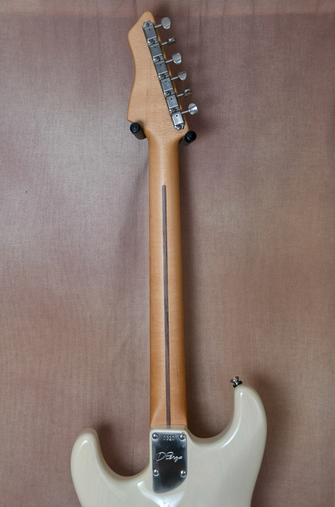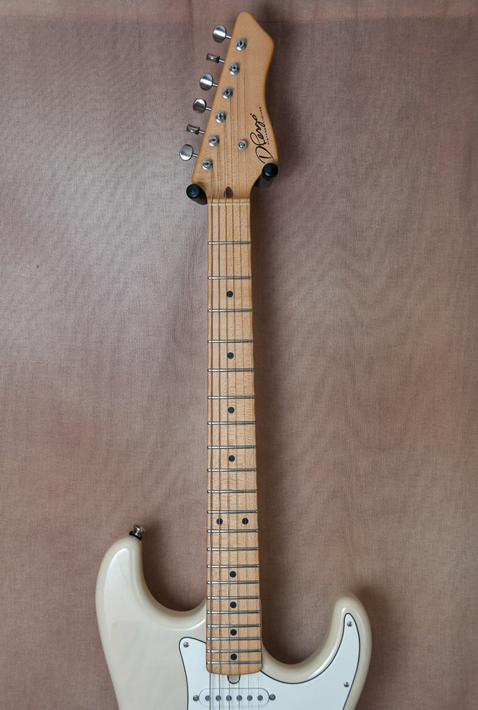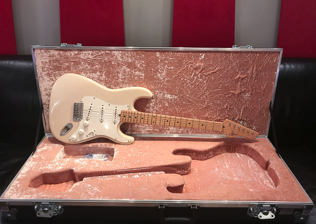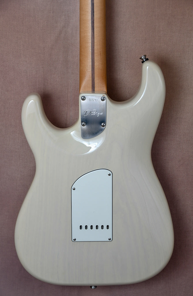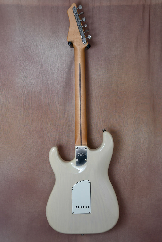 Just to us fresh out of a large collection is this beautiful D'Pergo Vintage Limited finished in white blonde. The workmanship and playability on this guitar are truly remarkable. It may have the best fret work I've ever seen on a new guitar. All of the materials used in this build are just perfect. From the swamp ash body to the maple neck this guitar is at another level. Sonically this guitar is very versatile covering both Strat and Tele tones with ease. The guitar is all original and will ship in it's original form fit road case. Again please touch base with any questions.
