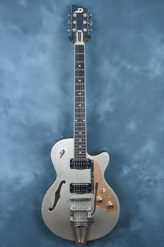 Fresh into the shop is this mint Duesenberg Starplayer TV in a beautiful Silver Sparkle. This guitar is complete with all of its case candy and spec sheets. What first hit me when I plugged this guitar in is the amazing build quality and the sound of the pickups. This thing is just a great sounding rock machine! Also the tremolo is just so smooth on this guitar as well. If you have any questions please let us know how we can help. All specs are included in the photo of the original spec sheet.