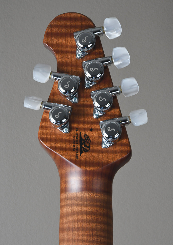 The JP15 features a lightweight African mahogany body with a figured roasted maple top. Featured here in Teal, the subtle yet beautiful satin finish compliments the flame or quilt figuring with stunning effect. Roasted maple neck and fingerboard adds just the right amount of snap and brightness while providing more stability in ever-changing climates. The JP 15 is powered by twin custom DiMarzio Illuminator pickups, piezo bridge system and onboard 20db gain boost. Available in 6 or 7 string with Music Man JP tremolo, 3-way Toggle pickup selector and Music Man hardshell case.