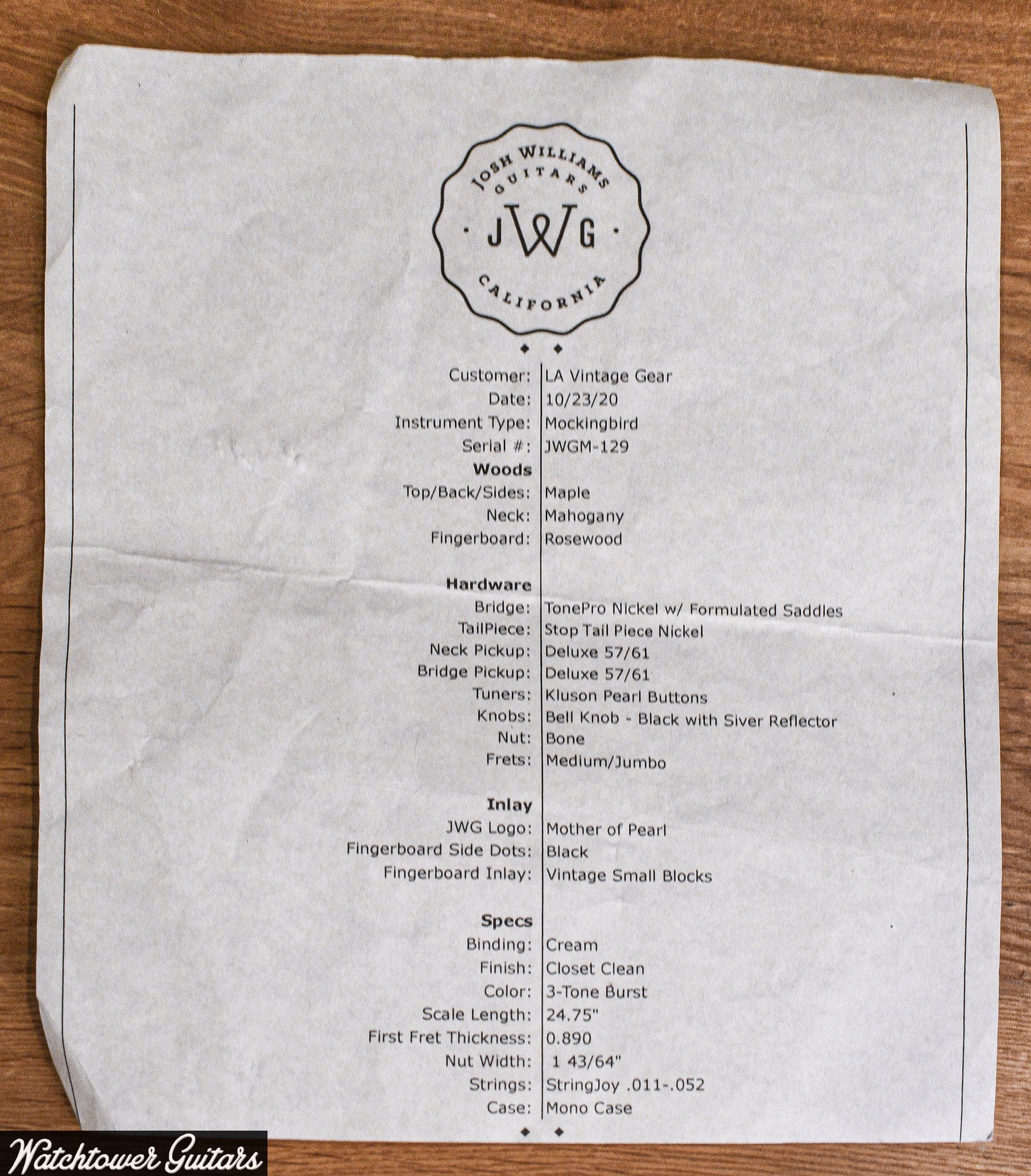 2020 Josh Williams Mockingbird 3-Tone Sunburst