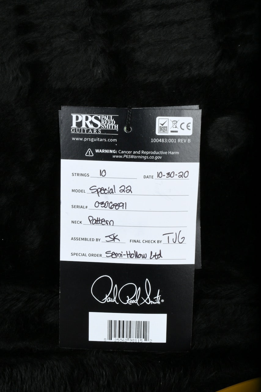 2020 PRS Custom 22 Special Semi Hollow *Custom Color* Goldtop