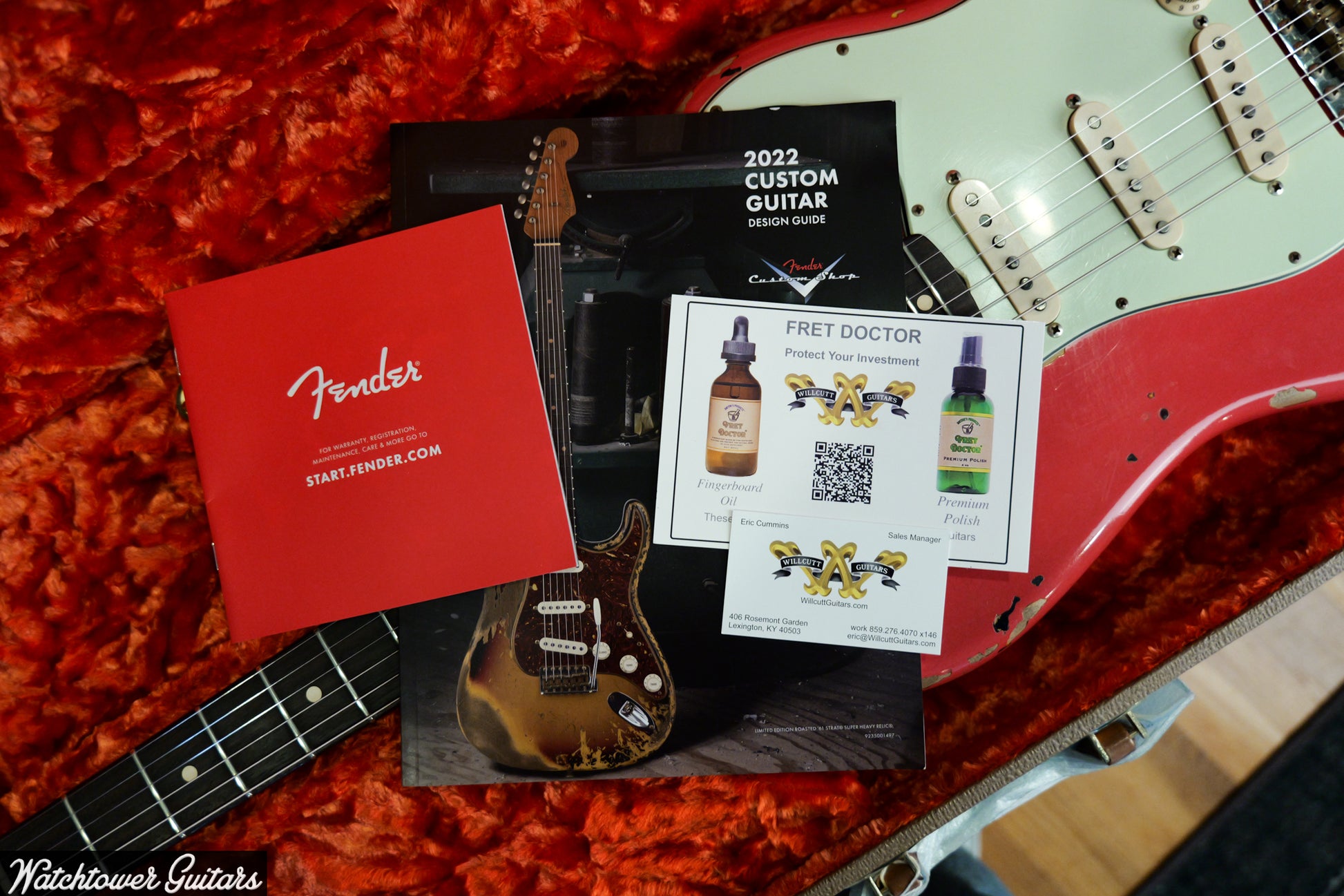 Equipped with custom hand-wound pickups and wiring, the guitar offers versatile tone options through five-way pickup switching. It also includes a custom vintage-style tremolo bridge to capture the classic Strat sound and feel. This example is in excellent condition and comes complete with all case candy, certificate of authenticity, shop traveler, and original hardshell case, making it a fine collectible as well as a top-tier playing instrument.