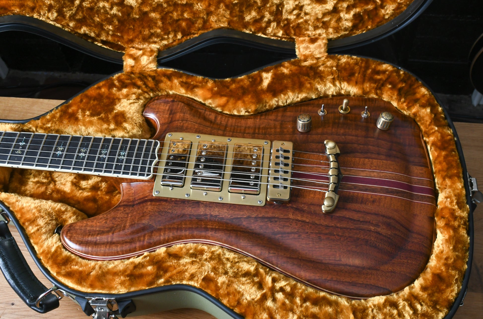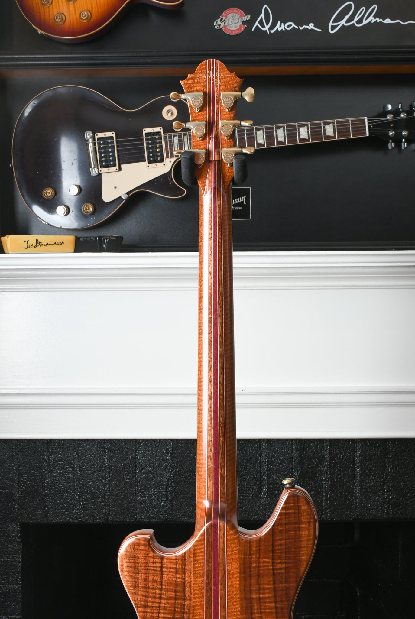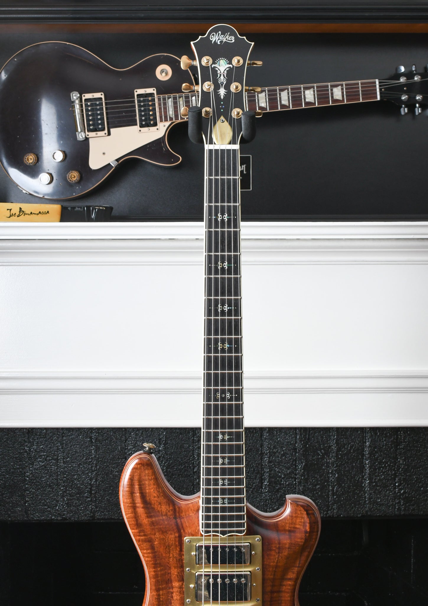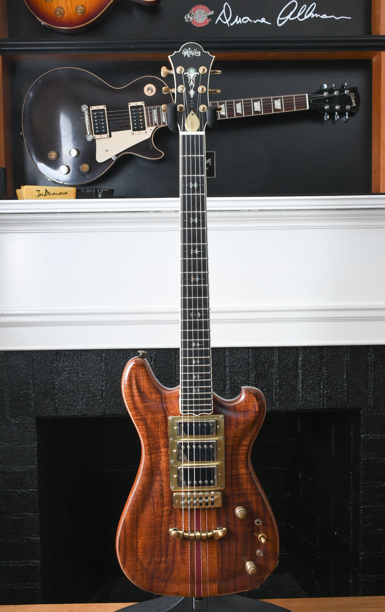 This instrument is obviously inspired by the guitars built by Doug Irwin for Jerry Garcia. The Wolf and Tiger are two iconic instruments that have always inspired and crept into the design and features that are in many of the Walker guitars. The idea with the Revelator is to take both of those instruments and combine certain features, like the Ergonomics of the Wolf (outline, scale, pickup placement, strap button placement, etc) but with certain construction elements that are prominent in the Tiger guitar (top carve and wood combo).