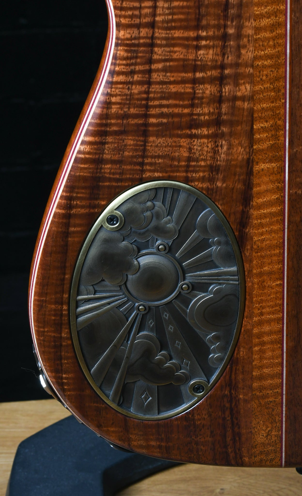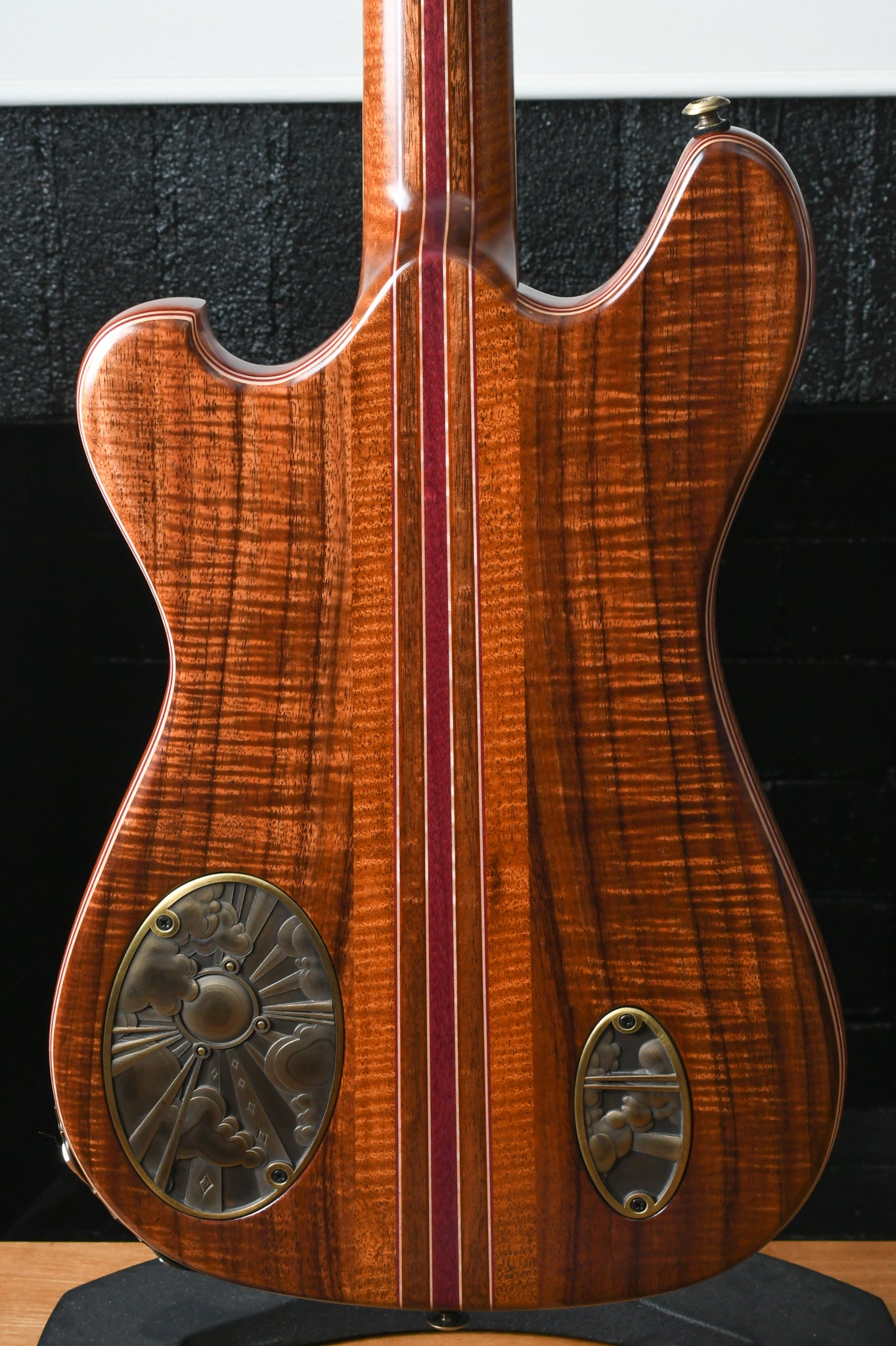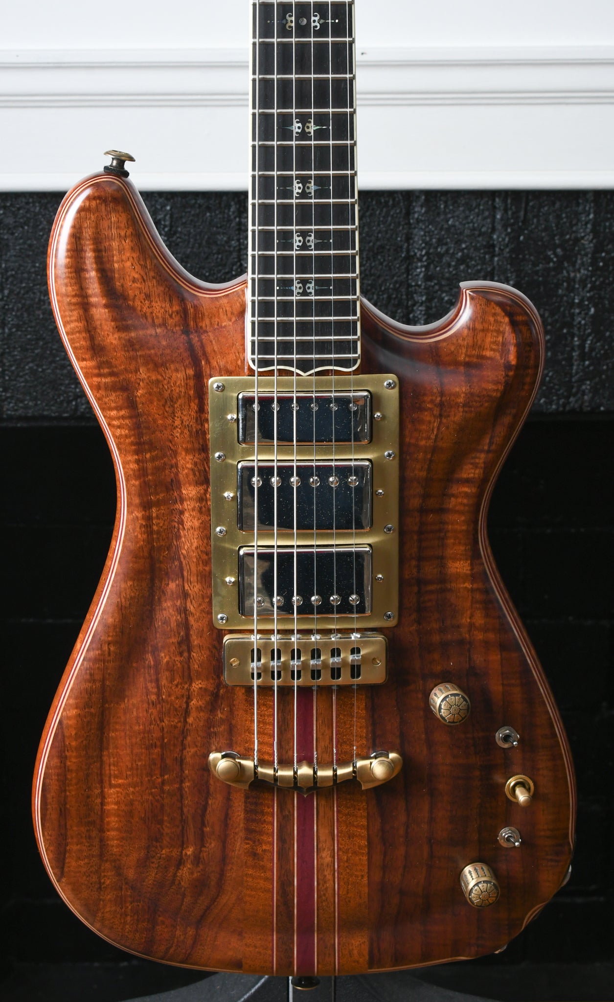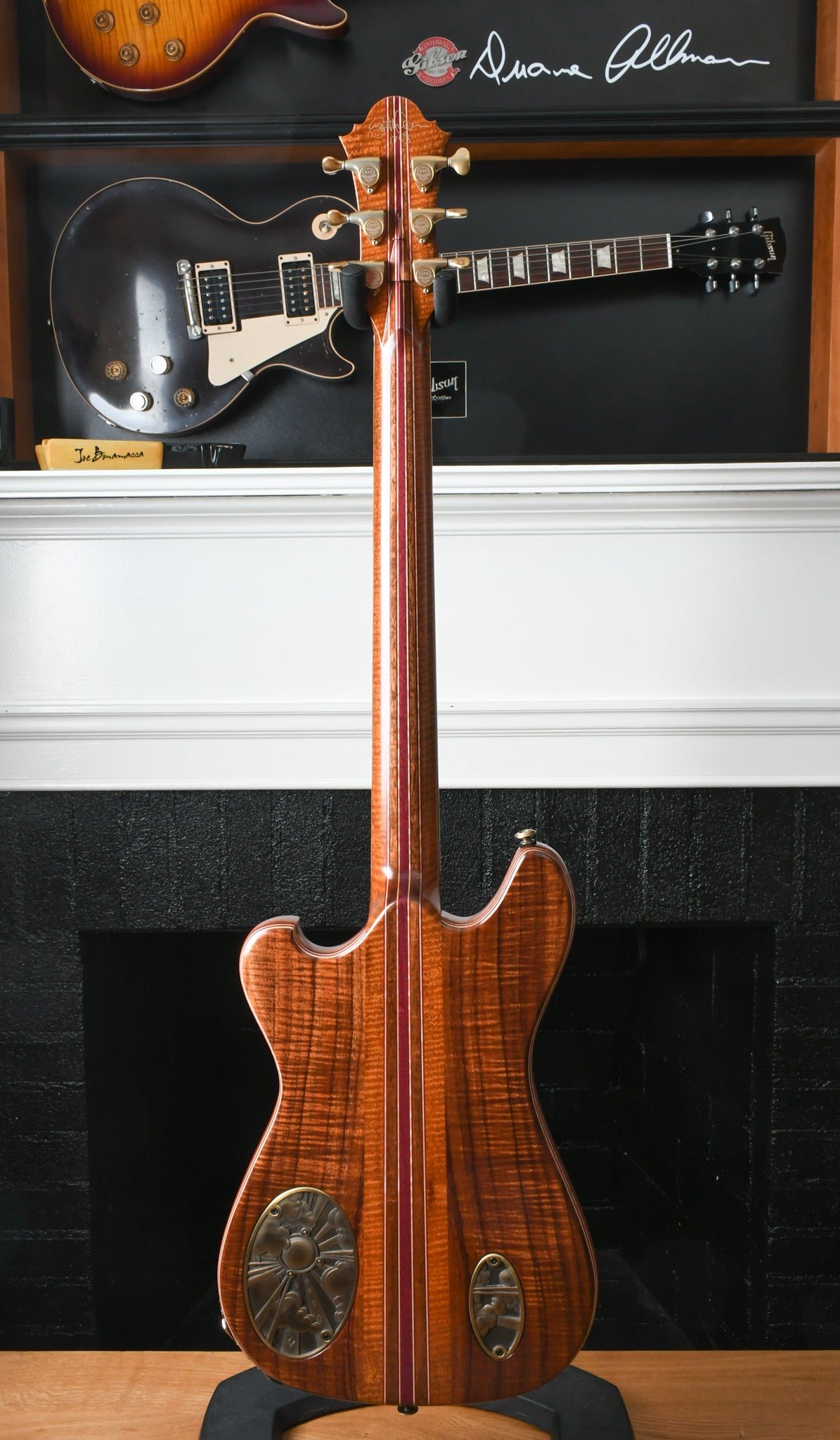 This instrument is obviously inspired by the guitars built by Doug Irwin for Jerry Garcia. The Wolf and Tiger are two iconic instruments that have always inspired and crept into the design and features that are in many of the Walker guitars. The idea with the Revelator is to take both of those instruments and combine certain features, like the Ergonomics of the Wolf (outline, scale, pickup placement, strap button placement, etc) but with certain construction elements that are prominent in the Tiger guitar (top carve and wood combo).