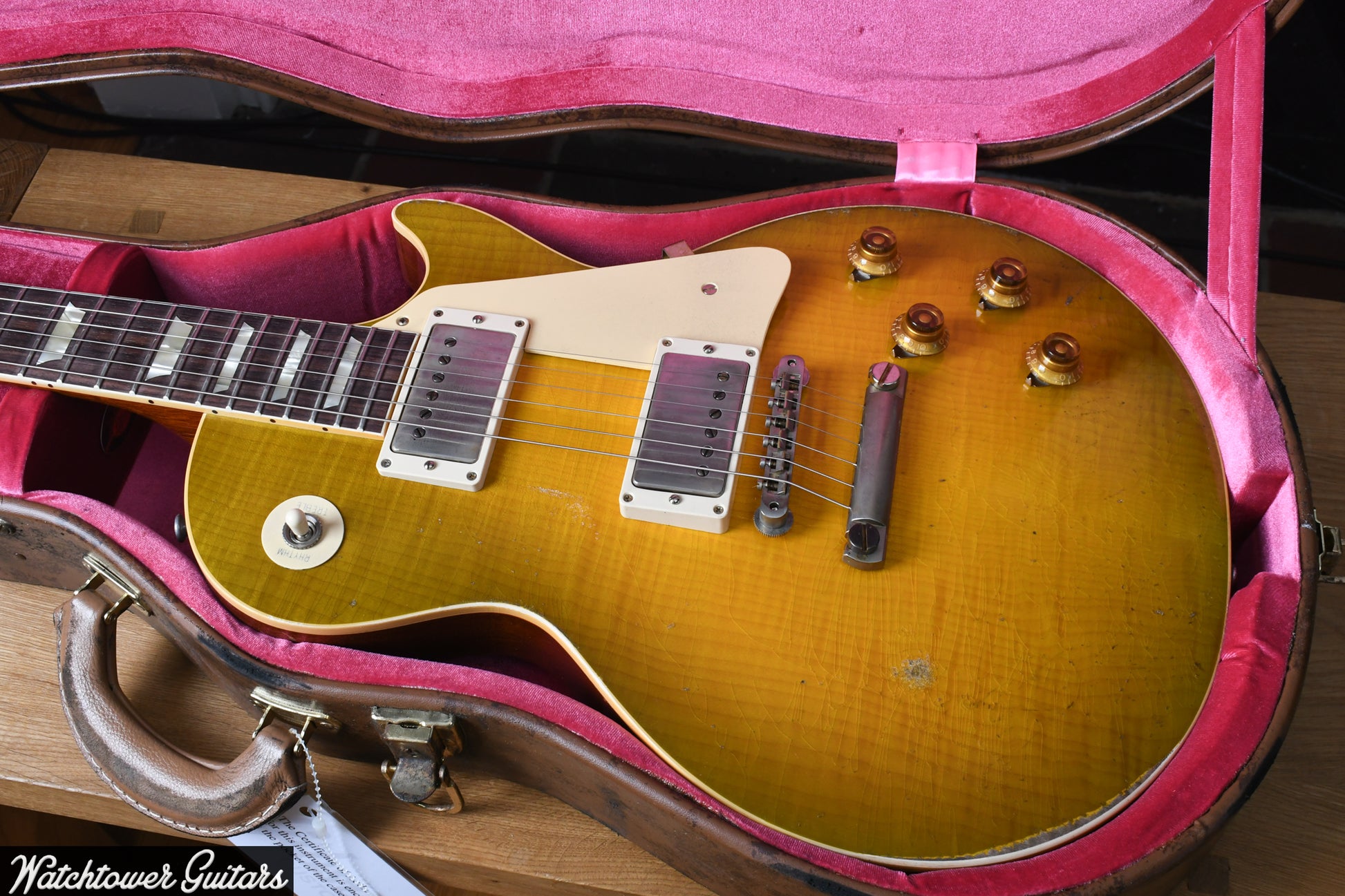 Gibson Custom Shop's 1959 Les Paul™ Standard Reissue is not just a tribute to the priceless original models -- it's a clone of them. From laser-scanned dimensions to chemically-recreated plastics to color-matched shades of sunburst, every element has been rendered in unbelievable detail. It represents the culmination of decades of work by Custom Shop's expert team -- a tireless quest to bring accuracy and authenticity to the hands of fans. It’s the definition of cool, and it's the best representation of the 1959 Les Paul Standard since the Gibson Custom Shop began making Historic Reissues over twenty-five years ago. It features Heavy Aging by the skilled artisans of the Murphy Lab. The Murphy Lab Heavy Aged finish treatment, paired with heavily aged hardware, simulates decades of heavy play wear, giving it the unique character, vibe, and feel of an original example from the Gibson Golden Era.