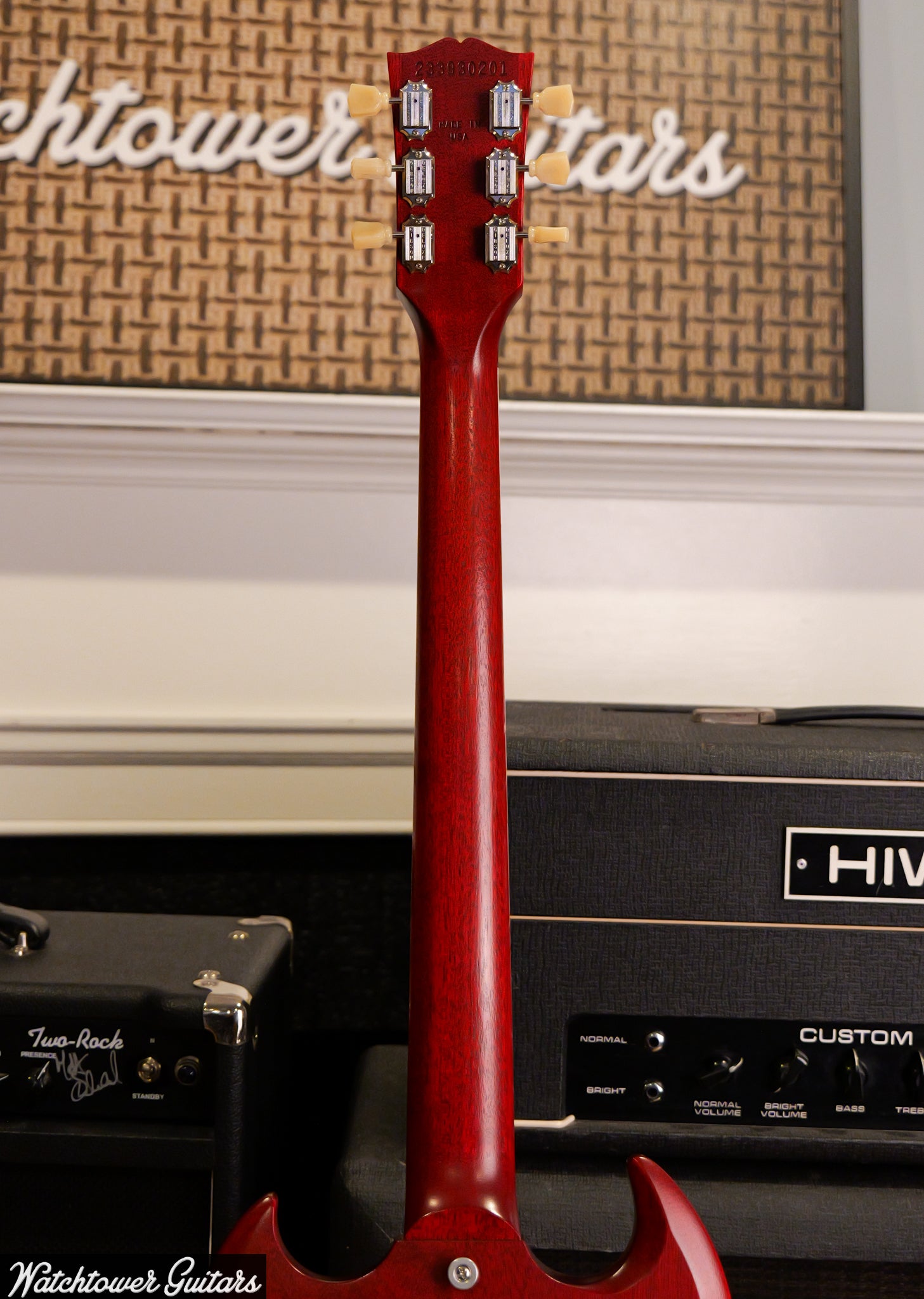 - Solid mahogany body with faded Vintage Cherry finish and classic SG double-cutaway design