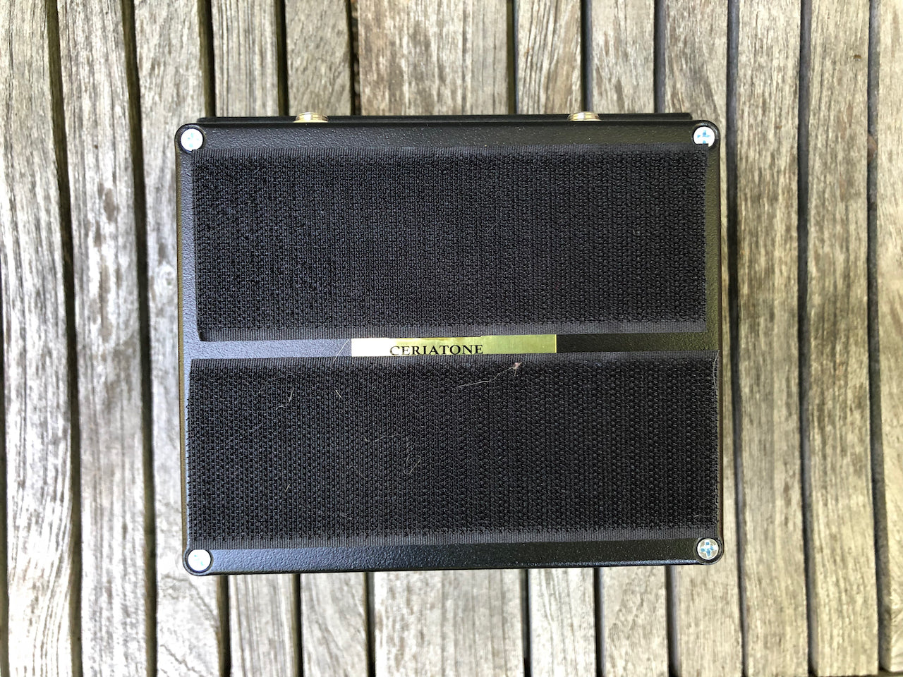 comes with box, velcro attached on the back for easy attachment to your pedalboard.