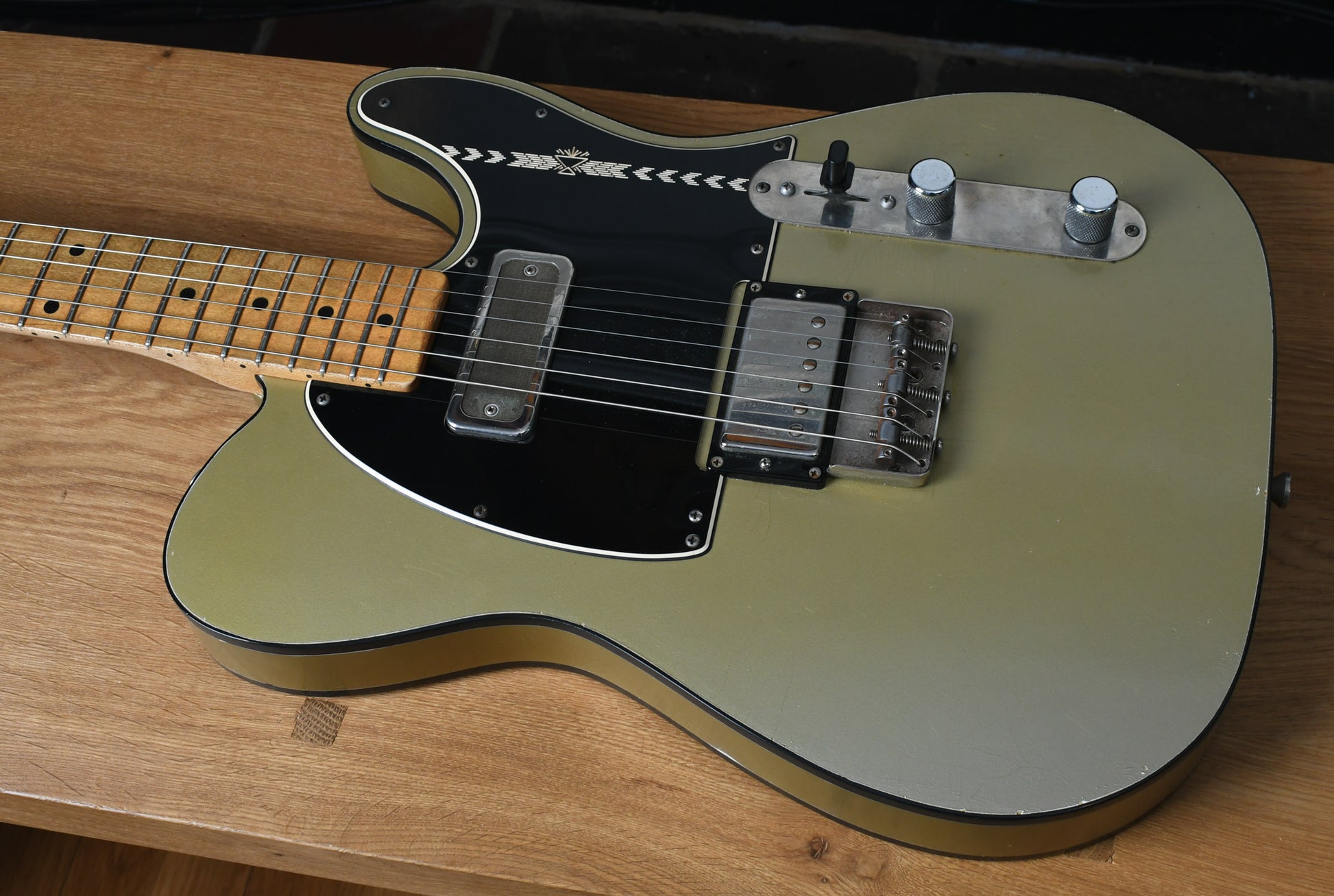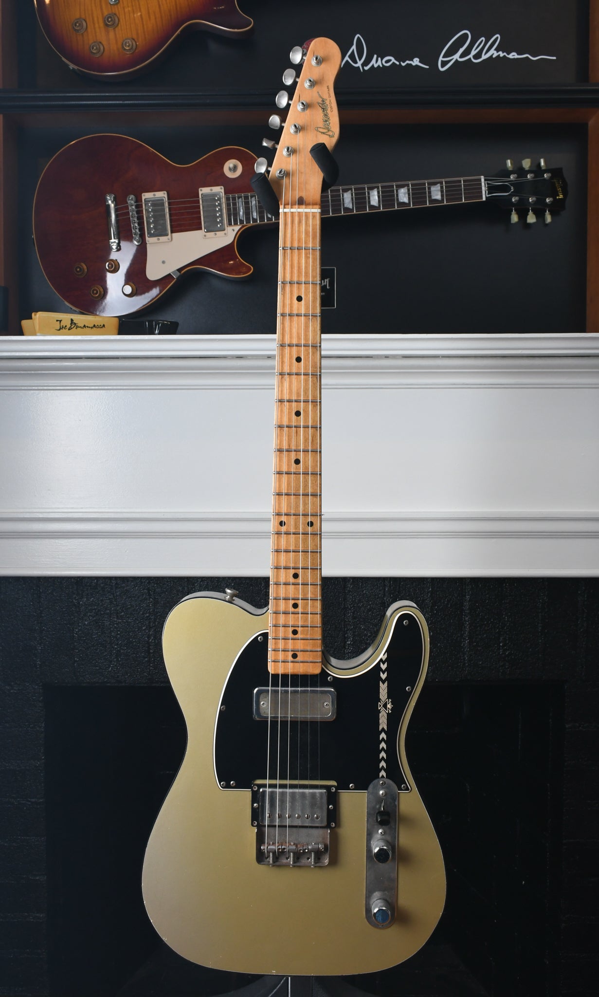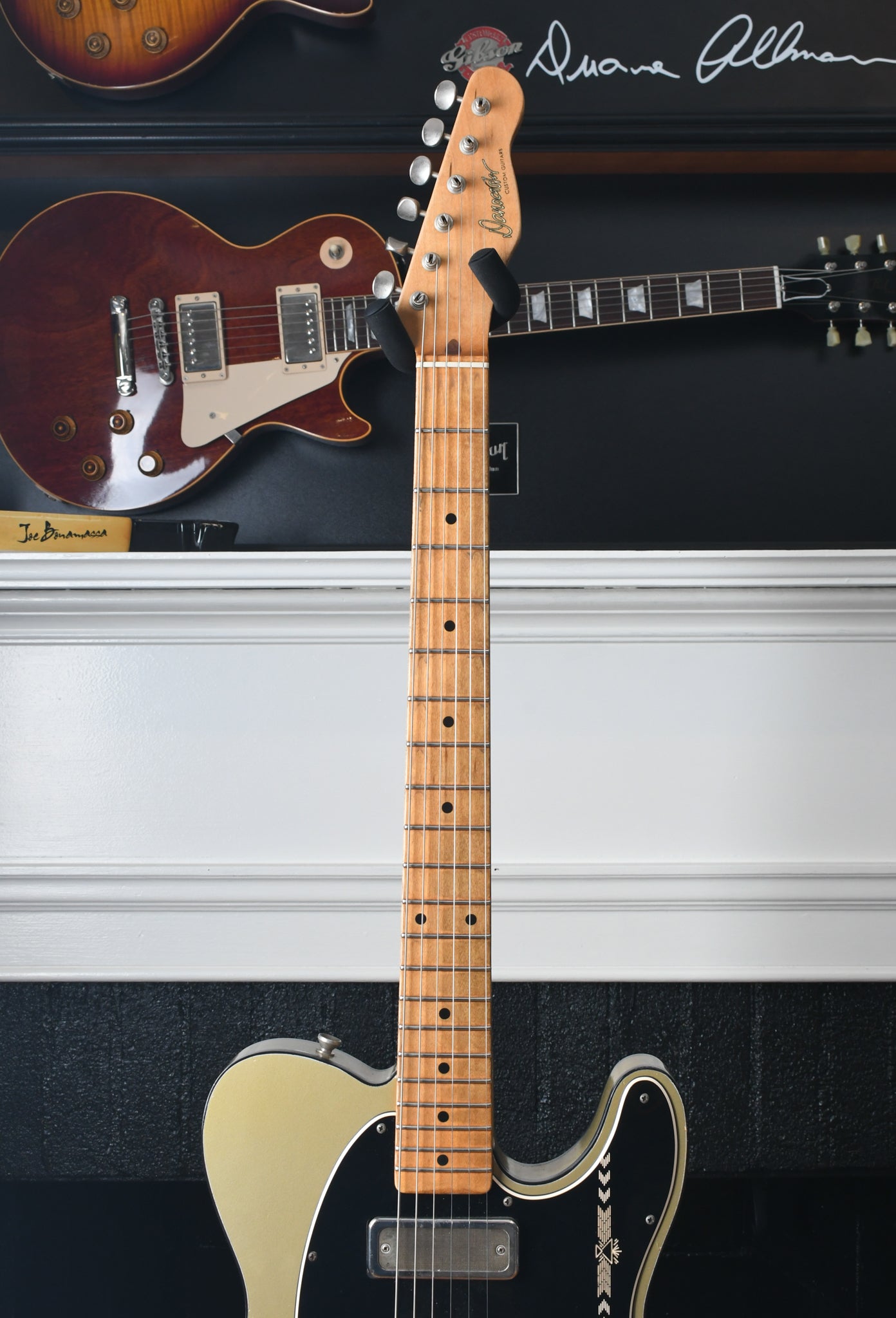 This beauty is loaded with a fantastic sounding McNelly gold foil in the neck and humbucker the bridge position. Wow, does this one sound great. Also very cool native graphic on pickguard. This combo brings an expanded tonal palette to the table - more punch, output, and heft than the classic open, twangy chime of a traditional Tele. This pickup combination is the perfect for players needing to cover more ground with a single guitar as there are elements of Tele twang present, but you can certainly push into more muscular tones with ease! Ships in a gig bag.