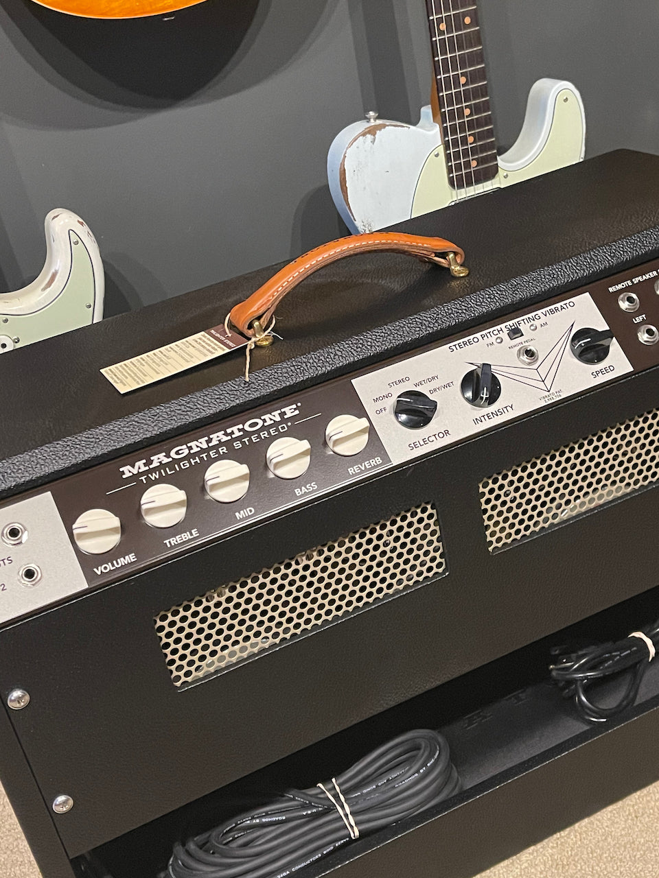We just had a run of custom color Magnatone amplifiers arrive in the shop and we're super impressed with how they all came out. The vintage brown was always a classic look but we just had to see a Twilighter Stereo combo decked out in custom black tolex with a black cane grill cloth. These amps truly deliver on their True Dimensional Sound tag line. Contact us about how these amps can change your tone!