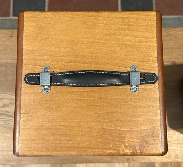 Maple Cabinet with Teak Stain, Custom Grill Cloth, Silver Faceplate, Black Leather Handle"