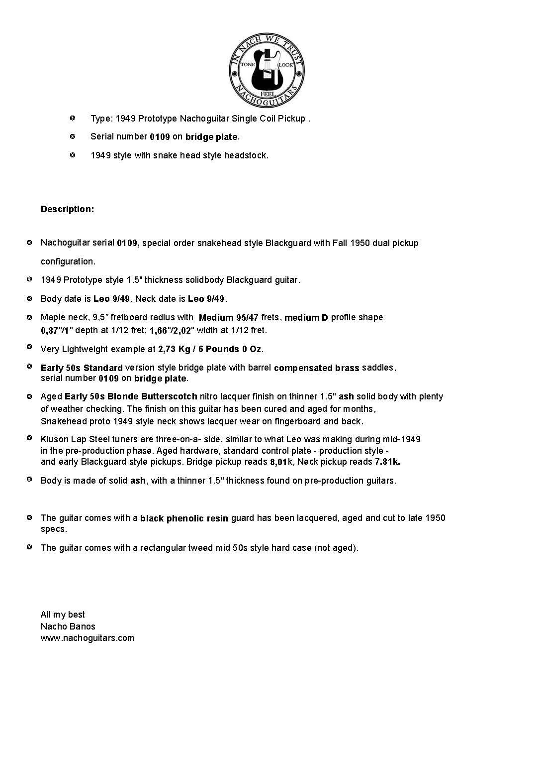 * Nachoguitar serial 0109, special order snakehead style Blackguard with Fall 1950 dual pickup configuration.