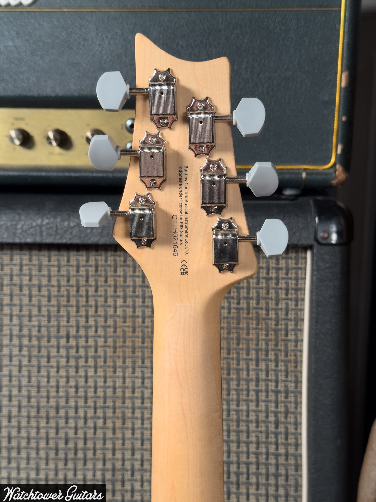 Equipped with three single-coil 635JM “S” pickups, the SE Silver Sky Rosewood offers a wide range of tonal possibilities, from crisp, articulate notes to rich, resonant sounds. The guitar's 22-fret neck, set at a 25.5” scale length with an 8.5” fretboard radius, ensures comfort and familiarity. Key components such as the two-point steel tremolo, synthetic bone nut, and vintage-style tuners provide stability and expressive capability. Additional features include the PRS Silver Sky inverted headstock and a user-friendly double-acting truss rod. This guitar is shipped with PRS Classic 10-46 strings and comes with a gig bag for easy portability.