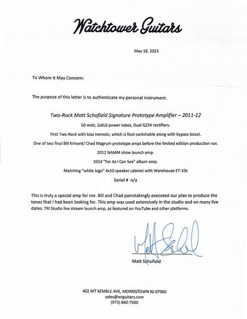 Two Rock Matt Schofield Signature Amplifier Prototype - Matt's Actual Rig ! $12,995.00